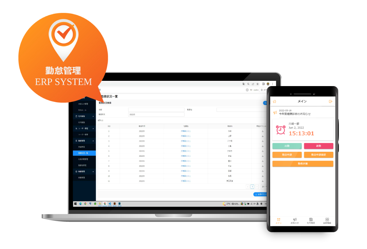 ERP SYSTEMは人材確保・維持につながる労務改善を推進し、 リスクを予防することで、 監査の対応や労務トラブルに煩わせることなく 本業に専念することができます。 労働基準法に準拠したシステムであり、 社会保険労務士のもと 労務管理の問題解決の手段として実現した クラウド型勤怠管理システム。